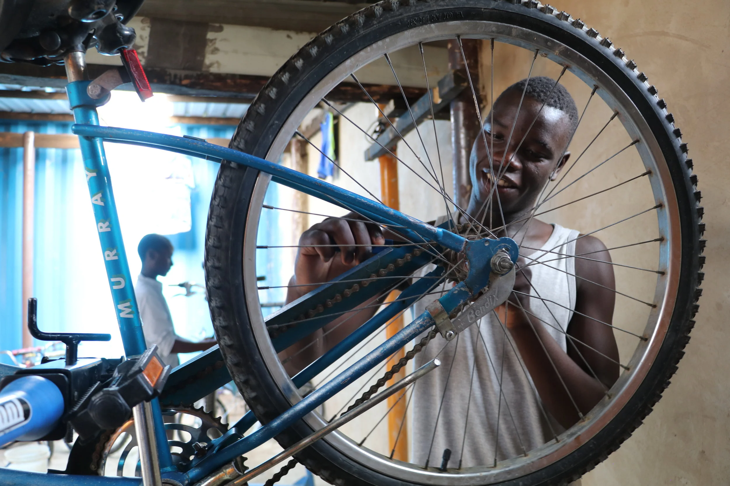 Charles Zulu II is the manager of the bike shop. He is one of the older students who grew up in the Every Orphan's Hope family homes and now lives on his own in Chongwe near the bike shop.